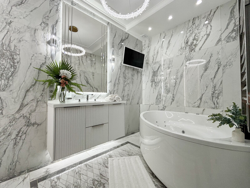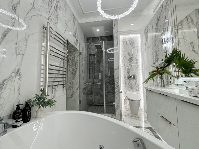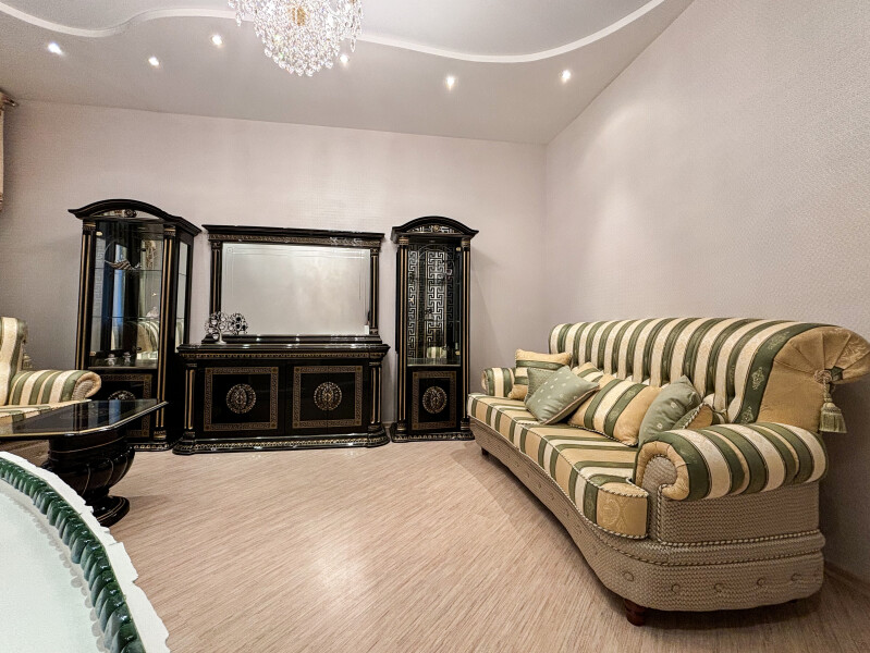 - Мебель: диван раскладной, кровать двуспальная, прикроватные тумбочки, стол, стулья, шкаф