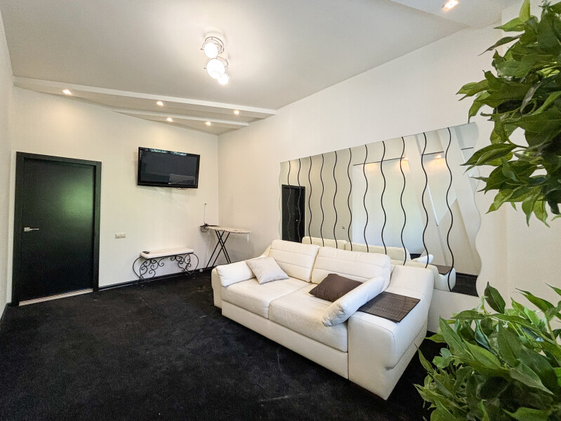- Оборудование: гладильная доска, кондиционер, микроволновая печь, набор посуды, плита электрическая, стиральная машина, телевизор, утюг, холодильник, чайник